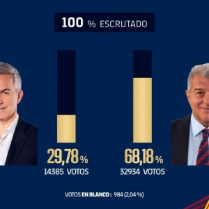 3月16日讯 每体报道,拉波尔塔在巴塞罗那俱乐部主席选举中再次大获全胜,获得32934票,占总票数的68.18%。维克托...