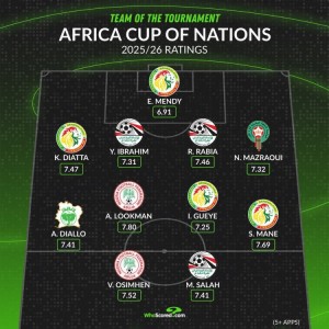 1月20日讯 本届非洲杯已经完赛,whoscored也统计了本届非洲杯评分最佳阵容,塞内加尔4将、埃及3人在列。whos...