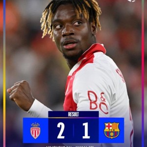 体坛周报全媒体原创 摩纳哥2比1巴塞罗那 16'阿克利乌什,71'伊莱尼凯纳/28'亚马尔欧冠第一轮最后一个比赛日,...