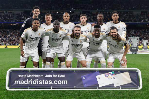 热热闹闹的西甲冠军庆祝游行两天过后,皇马迎本赛季倒数第二个主场比赛。赛前伯纳乌进行了简短的联赛冠军奖杯展示,球场中央用纸板陈列了皇马队史收获的全部36座西甲冠军奖杯,蔚为壮观;客队阿拉维斯的球员们也列队欢迎新科冠军入场。上周末尽遣替补大胜格拉纳达过后,本场迎战保级无虞的阿拉维斯,皇马基本派出了全部主力。